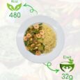 Ingredienten: rijst, garnalen, broccoli, paprika, ui, tereyaki saus, soya, kruiden.