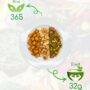 Ingredienten: zoete aardappel, kip, sperziebonen, paprika, mais en kruiden.