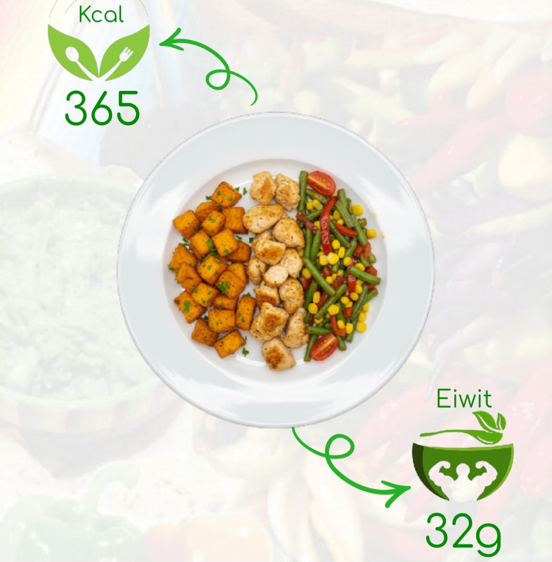 Een kleurrijke, voedzame maaltijd boordevol smaak! Deze bowl bestaat uit geroosterde zoete aardappelen, malse kipfilet en een mix van sperziebonen, mais en paprika. Alles vers bereid en licht gekruid voor de perfecte balans tussen hartig en zoet.